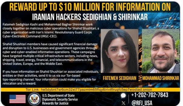 في خطوة تعكس اشتداد الحرب الإلكترونية بين الولايات المتحدة وإيران، أعلنت وزارة الخارجية الأميركية مكافأة مالية تصل إلى 10 ملايين دولار مقابل أي معلومة تساعد في تحديد مكان وجود أو اعتقال فاطمة صديقيان كاشي، إحدى أبرز المتهمات بإدارة عمليات اختراق سيبراني استهدفت منشآت حيوية في الولايات المتحدة ودول أخرى.