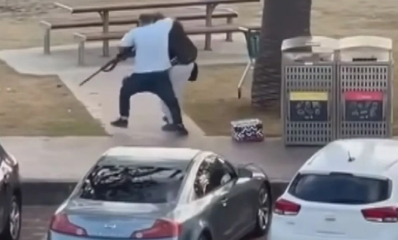 اختبأ أحمد خلف سيارة فضية، ثم اقترب بهدوء من المسلح قبل أن يقفز نحوه ويمسكه بإحكام من الخلف، واشتبك مع المسلح حتى تمكن من انتزاع السلاح، ثم وجهه نحوه، لكنه لم يطلق النار، مكتفيا بالإشارة لطلب المساعدة.