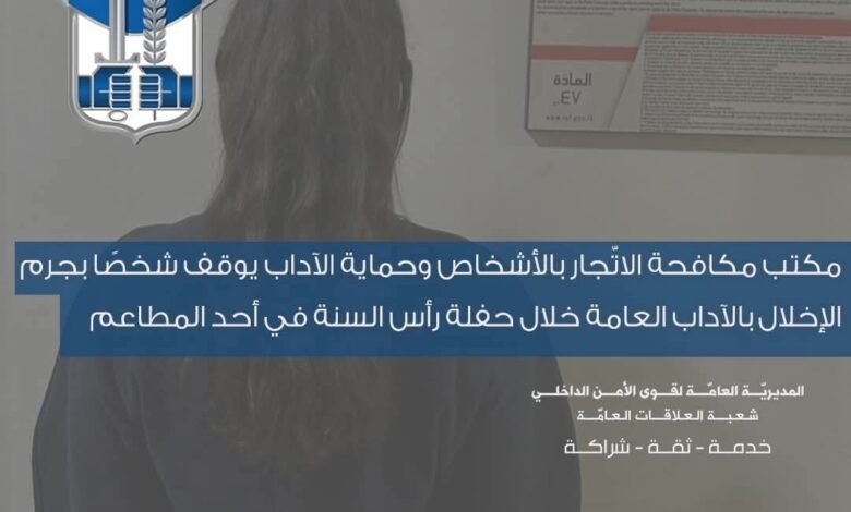 بتاريخ 1-1-2026، توافرت معلومات لدى مكتب مكافحة الاتّجار بالأشخاص وحماية الآداب في وحدة الشرطة القضائيّة حول قيام شخص بالرقص عاريًا داخل أحد مطاعم مدينة بيروت، وذلك خلال حفلة رأس السنة، حيث جرى توثيق الحادثة بمقطع فيديو جرى تداوله عبر مواقع التواصل الاجتماعي.