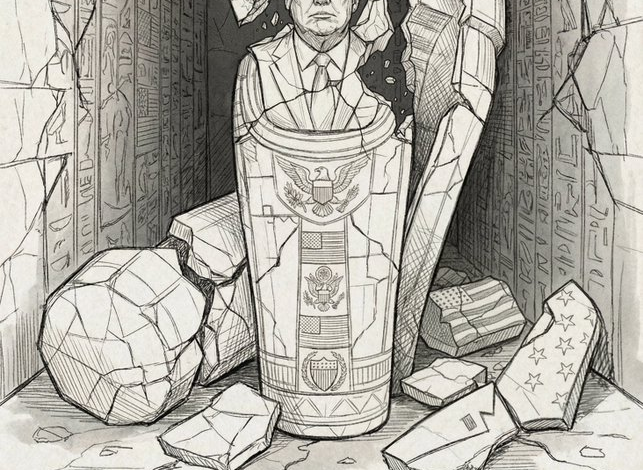 وعبر خامنئي عن هذا الموقف بنشر صورة لتمثال لترامب على هيئة مجسم فرعوني محطم.