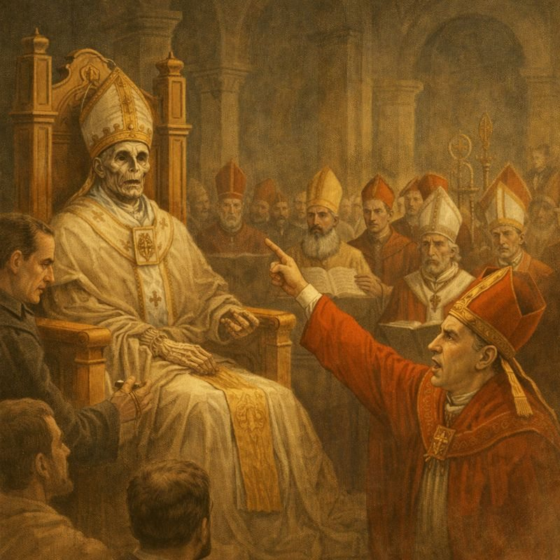 الأحداث عام 897 ميلادية كانت روما في تلك الأيام مدينة لا تعرف الاستقرار، فالسلطة كانت تُستمد من الدين والسياسة معًا، والكنيسة كانت ساحة للصراع أكثر من كونها مكانًا للسلام. في أحد أزقتها الضيقة، كان الناس يتحدثون بصوت منخفض عن البابا الجديد وعن ماضي البابا الذي سبقه، فورموسوس، الذي كان له أعداء كثيرون بسبب تحالفاته السياسية.