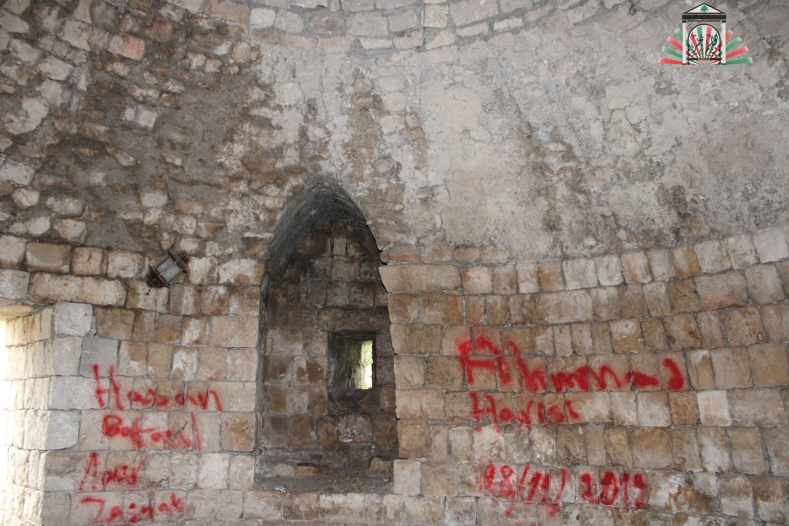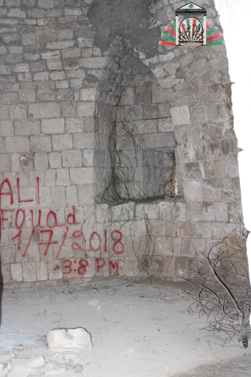 قصدنا القلعة ولم نعرف من اين ندخلها بحثنا عن مدخل او معبر الى داخلها وهذا ما لم يتوفر الا بالصعود على كومة احجار لجدار منهار , وبتجولنا بها رأينا الإهمال والأعشاب التي ربما تعود للسنة الماضية وربما اكثر , وما هو اكثر ايلاما ان بعض الزوار اوقدوا مواقد الحطب بداخلها وبعضهم دون اسمه على احجار القلعة التي تعود لمئات ولربما الاف السنين ببخاخات الطلاء الحمراء .