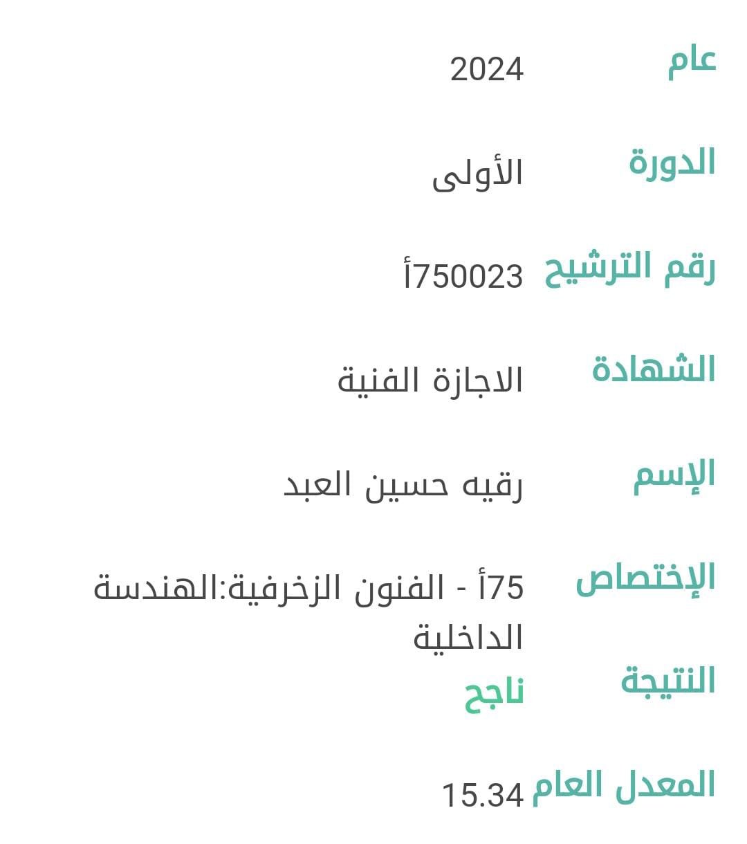اسرة موقع قلم حر تبارك للطالبة رقية حسين العبد من بلدة برج رحال حصولها على الإجاز الفنية في اختصاص الفنون الزخرفية الهندسة الداخلية , متمنين لها دوام التفوق والتوفيق والتألق .