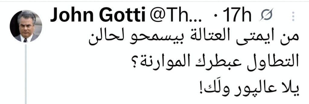 حساب اخر يحمل اسم GHON GOTTI وهو رئيس احدى العصابات العالمية , تداول منشور منسوب الى الحساب المذكور ومما جاء فيه حسب الصورة المرفقة ادناه :